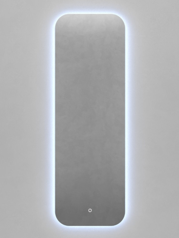 Безрамное зеркало прямоугольной формы с контурной (тыльной) тёплой подсветкой, свет 3000К. Подложка из высококачественного МДФ, светодиодная лента защищена матовым свето-рассеивателем от попадания пыли и влаги. Есть вывод 220W для подключения к сети, включение подсветки от сенсорной кнопки на зеркале, её расположение на зеркале можно выбрать на заказ.